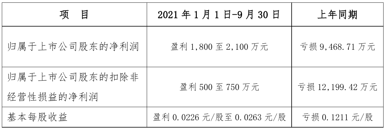 挖贝网10月13日,航天科技(000901)近日发布2021年前三季度业绩预告公告,预计2021年前三季度实现归属于上市公司股东的净利润为1800万元–2100万元,同比扭亏为盈。