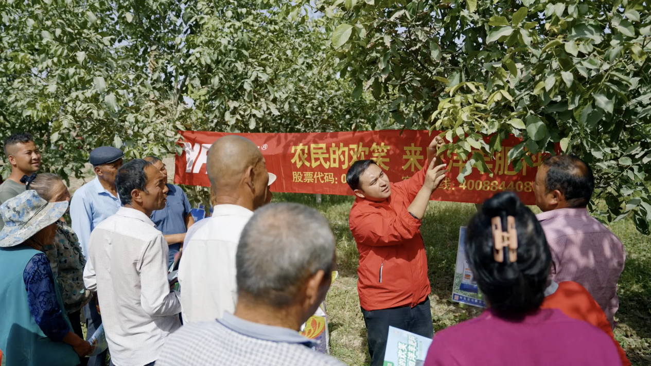 在服务赋能方面, 新洋丰 组建200多人的专业技术服务队伍和1000余人推广队伍,将产品推广与农化服务紧密结合,向农民提供涵盖作物全生长周期的技术服务方案。2017年至今, 新洋丰 累计开展技术培训5万余场,建设示范田5000余块,形成测土配方施肥建议报告近1万份,实现大田作物增产8%-10%、经济作物增收10%以上。