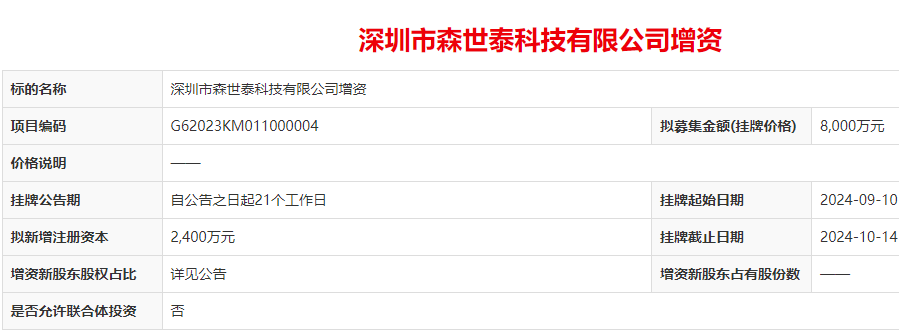 基于公司全资子公司深圳市铭特科技有限公司(以下简称“铭特科技”)下属子公司深圳市森世泰科技有限公司(以下简称“森世泰”)的传感器业务外部市场开拓及产业化经营发展资金需要,森世泰拟通过公开挂牌方式进行增资扩股引入1家战略投资者,铭特科技放弃森世泰本次增资扩股的优先认缴出资权,引入的战略投资方在增资的同时须受让铭特科技原持有的森世泰37%股权,股权转让的每股报价与增资每股报价一致。本次增资金额不低于8000万元,增资扩股暨股权转让完成后,引入的战略投资方持股比例为55%,成为森世泰的控股股东,铭特科技持有森世泰45%的股权,森世泰不再纳入公司合并报表范围。