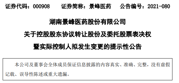 10月12日,湖南景峰医药股份有限公司发布了《关于控股股东协议转让股份及委托股票表决权