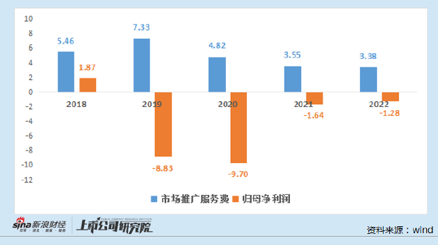 景峰医药2018-2022年归母净利润与市场推广费用对比示意图