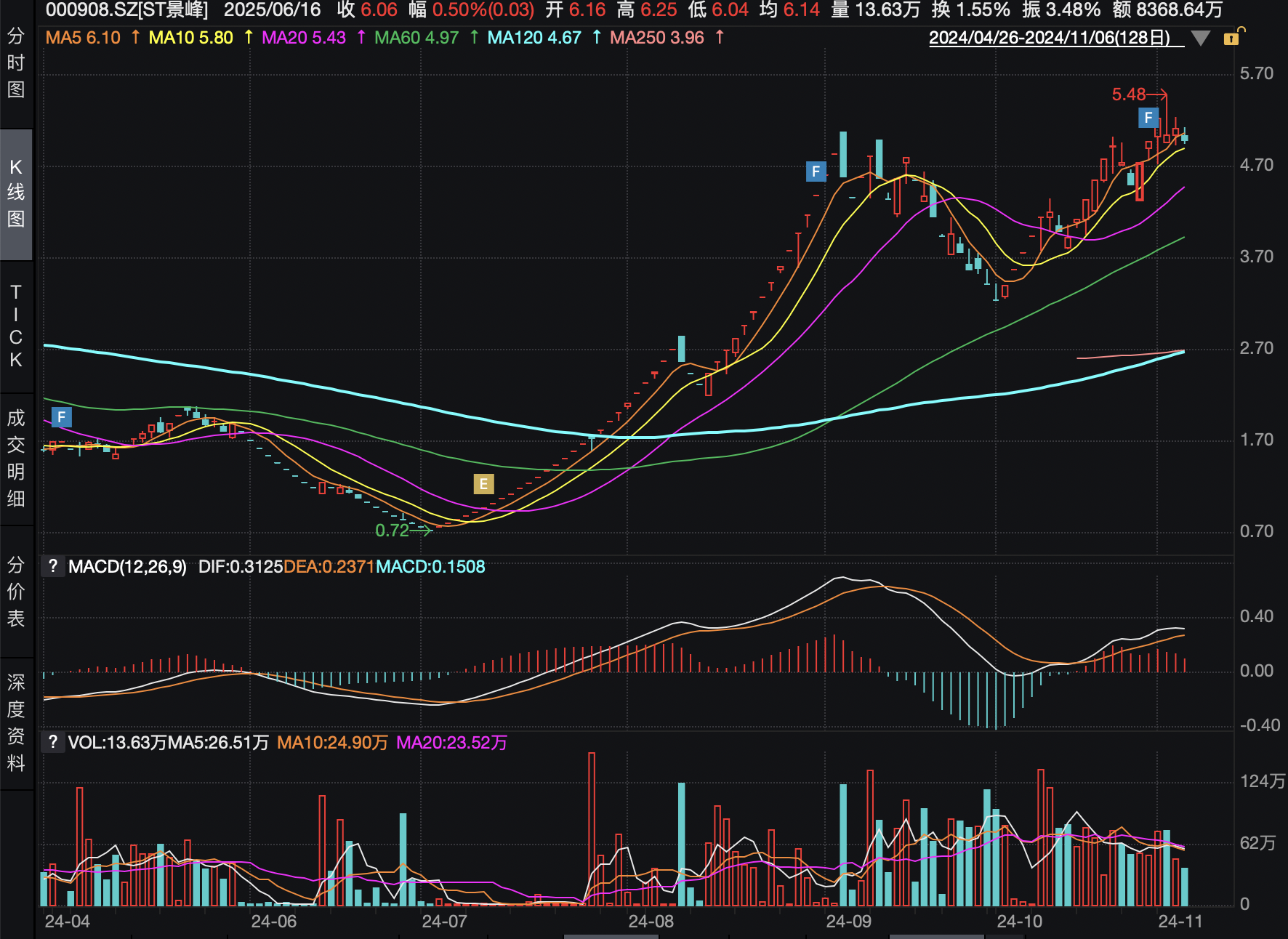 摘星复盘后第一天,ST景峰股价开盘后曾有所上涨,最高涨幅达3.32%,但随后又迅速下跌,最终收跌3.32%。
