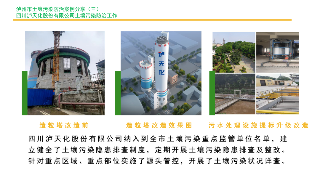四川泸天化股份有限公司纳入到全市土壤污染重点监管单位名单,建立健全了土壤污染隐患排查制度,定期开展土壤污染隐患排查及整改。针对重点区域、重点部位实施了源头管控,开展了土壤污染状况详查。推进强制性清洁性生产审核,实施了污水处理设施提标改造、尿素造粒大气深度治理、码头污染物防治设施整改等水气土协同治理项目,切实降低土壤污染风险。