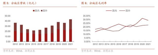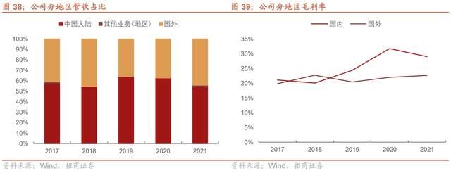 2017-2021 年,公司境内、外毛利率整体呈现增长趋势,2021 年达到 28.99%/26.62%。