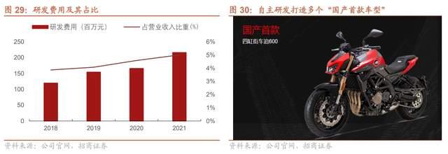 通过自主创新、合作开发、引进消化等多种方式进行技术改造、技术创新,公司具备了包括原创造型、发动机及变速箱、整车平台、电气及智能化控制等优秀的设计、研发能力,具备摩托车发动机及整车全流程正向研发能力。尤其是在大排量领域,公司自收购意大利百年摩企 Benelli,掌握大排量发动机及整车的协同研发、制造技术,具备深厚的底蕴和积累,产品符合并优于行业国 IV、欧 V、EPA 等法规标准等。
