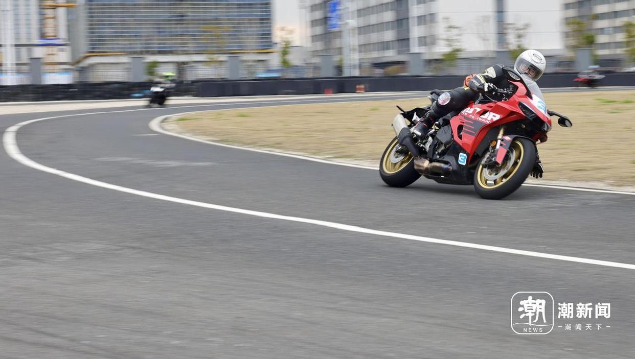 2月27日,在温岭经济开发区钱江东部智慧园区摩托车试车场上,试车员驾驶着各式摩托车疾驰而过,现场一片马力全开、干劲十足的火热景象。