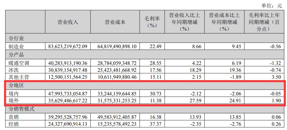 当海外营收以38.4%的占比创下历史新高时,国内市场却交出了近五年最差的成绩单;海外营收大涨的同时,毛利又远低于国内;“高毛利”的市场收入下滑,“低毛利”的海外市场收入上升……这种“冰火两重天”的格局,不仅让投资者困惑,更折射出中国家电行业在全球化与内卷化夹缝中的集体焦虑。