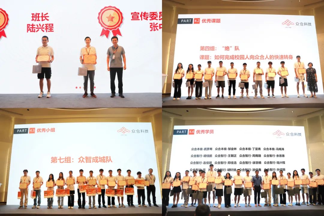 众合科技企业院士兼党委书记凌祝军,智慧交通子集团产品中心总经理刘爱军,众合科技董事会办公室主任葛姜新、人力资源部总经理郦明晓、战略发展部品宣经理周文娟出席结营仪式,并为同学们颁发结营证书与荣誉证书。