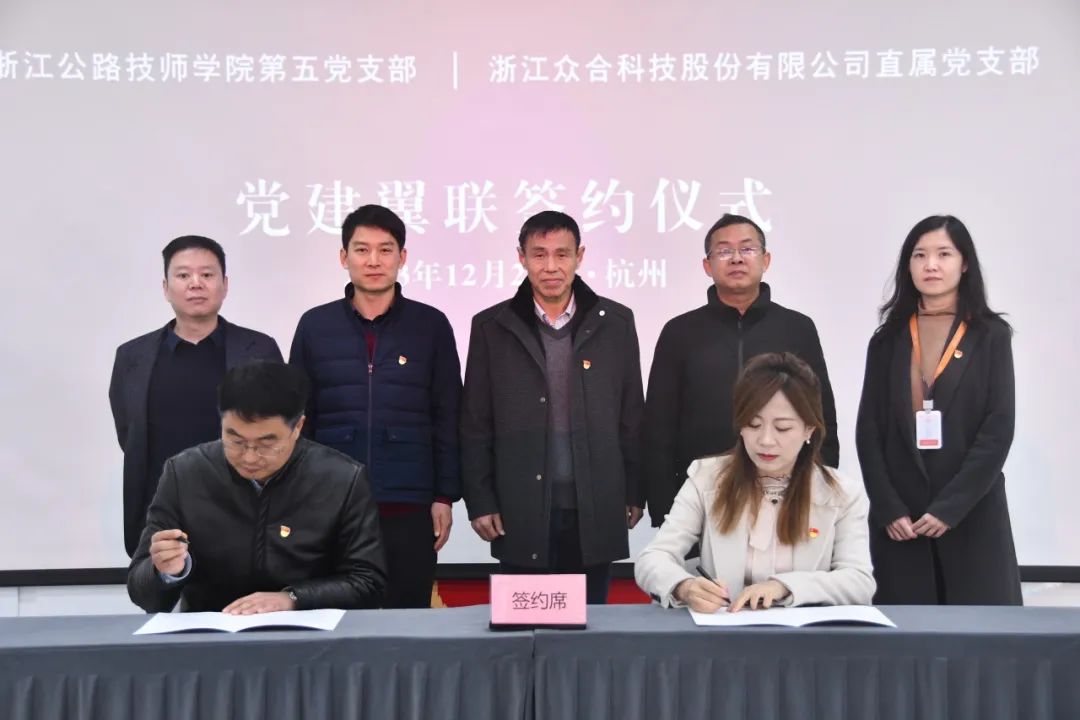 为发挥党建引领聚合力,实现党组织资源共享、优势互补,进一步推动党建与业务互融互促,12月29日,浙江公路技师学院第五党支部与浙江众合科技股份有限公司直属党支部携手开展了“党建翼联聚合力协作共建谱新篇”的“党建翼联”活动,并签署“党建翼联”合作书。