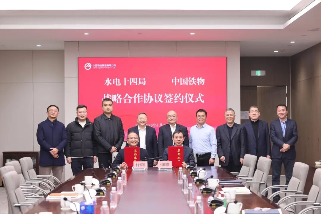 1月22日,中国铁物与中国水利水电第十四工程局有限公司(以下简称“水电十四局”)在京签署战略合作协议。中国铁物党委书记、董事长赵晓宏,水电十四局党委书记、董事长王曙平,见证签约并就深化战略合作、推动项目落地开展深入交流。中国铁物副总经理王建中,水电十四局副总经理郑修建代表双方签署协议。