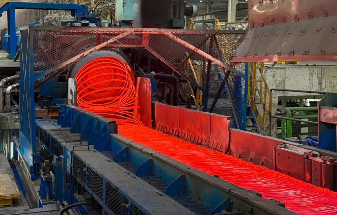 对由中钢设备EP总包建设的土耳其60万吨/年高线项目是为客户在当地新建的第二条高速线材生产线,旨在提升Tosyali的生产效率与产能,满足市场对高品质线材日益增长的需求。当地时间2025年1月15日,项目达产,实现115m/s高速稳定轧制。