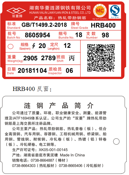 二、自本公告发布之日起,湖南华菱钢铁股份有限公司“双菱”牌螺纹钢应启用新的产品标牌、产品标识及包装标准,原有产品标牌、产品标识及包装标准同时停止使用。
