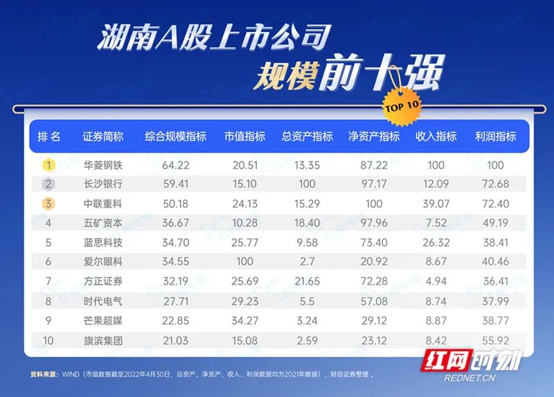 据了解,该榜单形成的依据是省地方金融监管局联合财信证券推出的湖南上市公司竞争力评价体系,通过规模实力、发展潜力、创新能力、经营效益、社会责任五大榜单,综合反映湖南上市公司的软硬竞争实力。