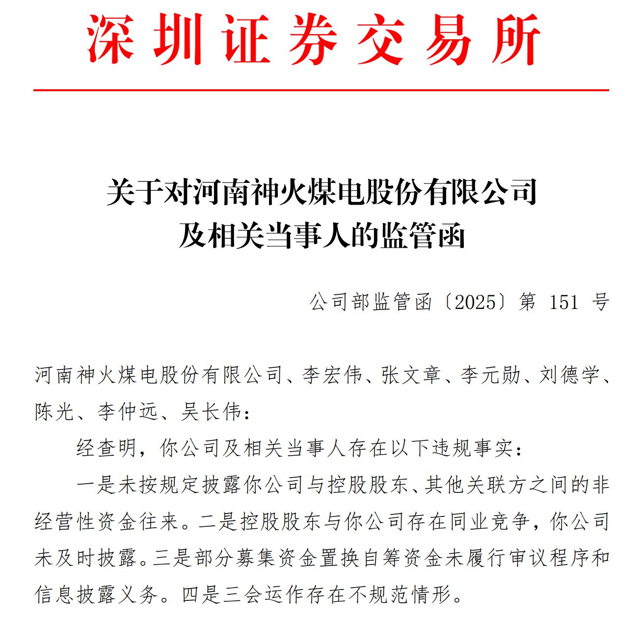 根据深交所《公司部监管函〔2025〕第151号》文件,神火股份此次被查明的违规事实清晰且严重,暴露出公司在多个关键运营环节突破合规底线。