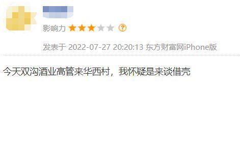 值得一提的是,7月27日,有投资者在股吧发帖称:“今天双沟酒业高管来华西村,我怀疑是来谈借壳”,8月4日午间,该为网友在原帖下方更新评论称:“双沟李总早上又来了”。