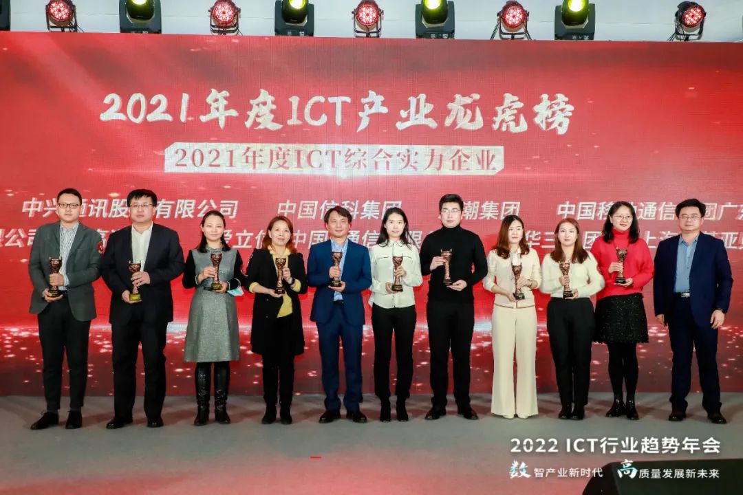 近日,中国ICT领域权威传媒平台通信世界全媒体发布了2021年(第18届)ICT产业龙虎榜暨优秀解决方案评选活动的获奖榜单,紫光股份旗下新华三集团作为数字化解决方案领导者,凭借2021年在产业市场中的优异表现,荣获年度重要奖项——“2021年度ICT综合实力企业”。此前,新华三刚刚在2021通信产业大会暨第十六届通信技术年会上荣获通信产业金紫竹奖——“2021年度推动产业进步贡献企业”和“2021年度优秀产品技术方案”两大奖项。