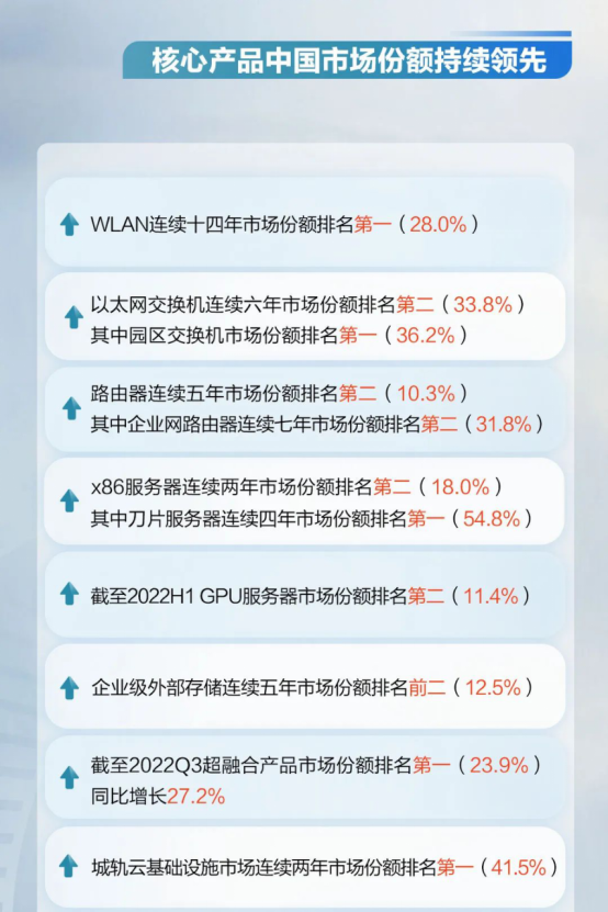 从产品维度来看,2022年紫光股份在多个关键领域取得突破,技术实力与创新能力不断增强,核心产品市场占有率持续提升,进一步扩大了领先优势,持续夯实了公司在数字经济核心赛道的差异化竞争力。公司在多个重点产品的市场占有率持续保持优势,在以太网交换机、企业网交换机、数据中心交换机市场,公司市场份额排名第二;中国企业网路由器市场份额持续位列市场第二;中国企业级WLAN市场份额连续14年市场领先;中国X86服务器市场份额保持市场第二。