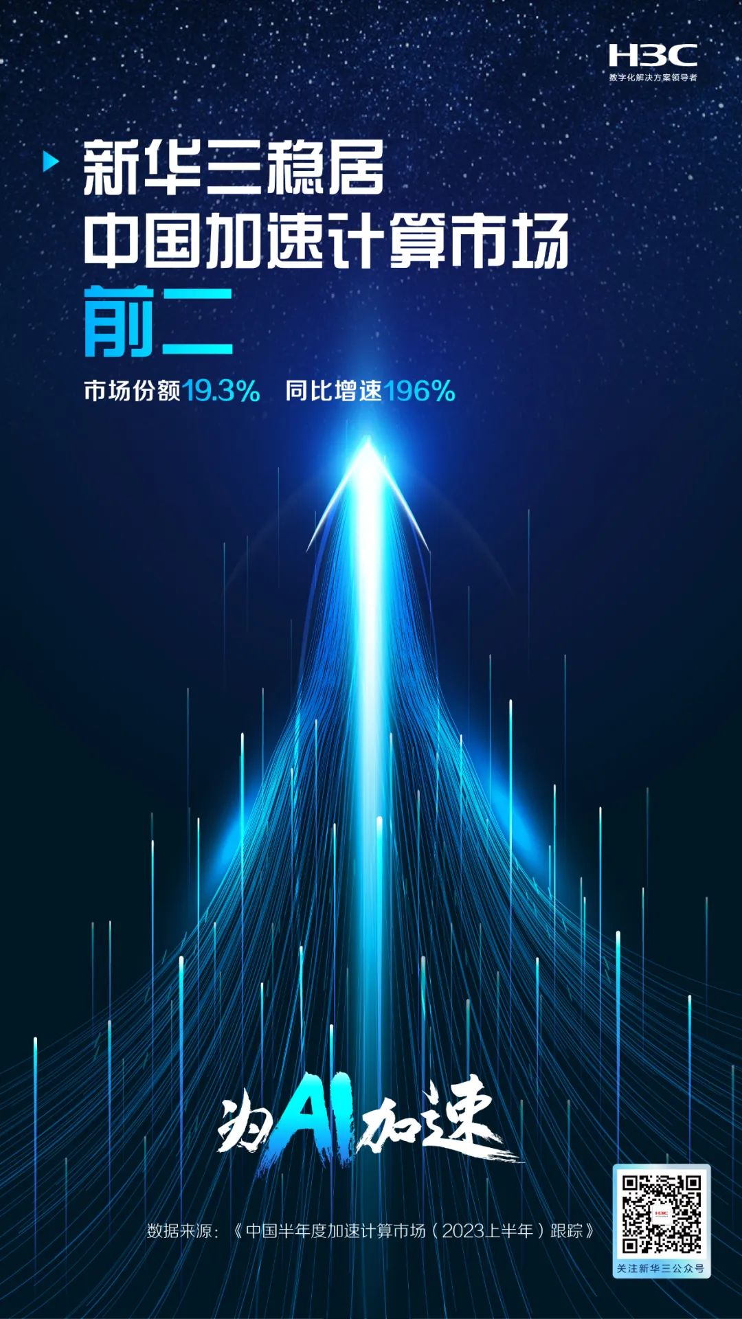 近日,IDC发布《中国半年度加速计算市场(2023上半年)跟踪》(以下简称“报告”)。报告显示,紫光股份旗下新华三集团以19.3%的份额稳居市场第二,并获得同比增速196%的亮眼成绩,以过硬技术实力与产品品质为AIGC时代构筑强大算力基石。