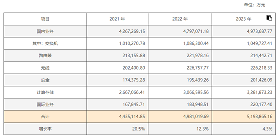 2021-2023年,新华三的收入增长率分别为20.5%、12.3%、4.3%,收入增速持续下降。