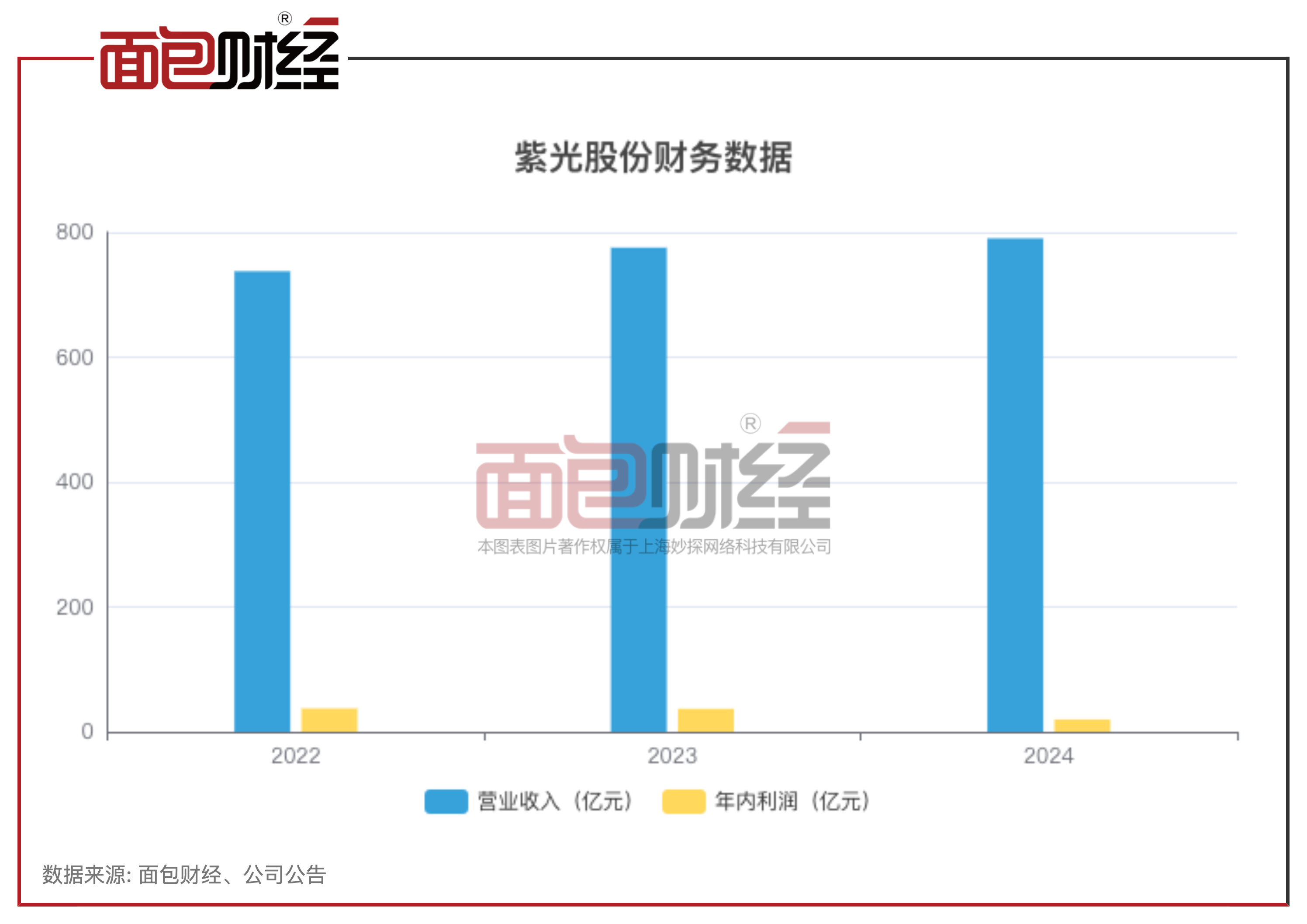 紫光股份近3年收入持续增长,2024年实现营业总收入790.24亿元,同比增长2.22%。相比之下,公司同期年内利润持续下滑,2024年公司年内利润为19.82亿元,同比降超46%。