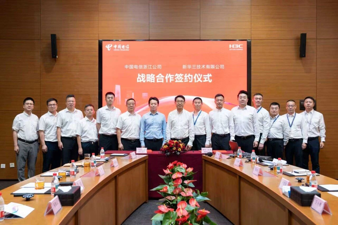 9月23日,紫光股份旗下新华三集团与中国电信股份有限公司浙江分公司(以下简称“浙江电信”)正式签署全面战略合作协议。双方将在前期已开展的基础通信与技术创新合作基础上,基于“立足长远、优势互补、资源共享、协同创新、互利共赢”的原则,面向国际信息通信技术前沿和产业趋势,进一步深化在基础设施底座、集约化运维服务、市场标品推广、DICT协同拓展、人工智能+等领域的合作,共同助力浙江省数字经济高质量发展。