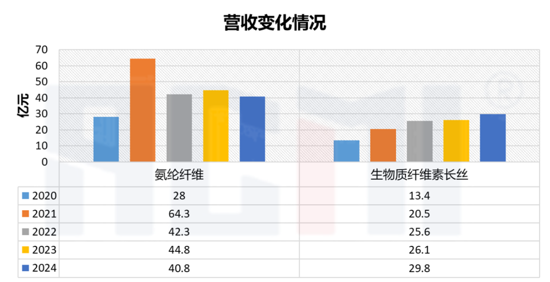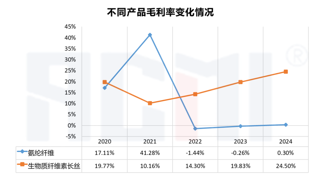 2024年,新乡化纤氨纶收入40.8亿元,同比下降8.88%,生物质纤维素长丝收入29.8亿元,同比提升14.25%。