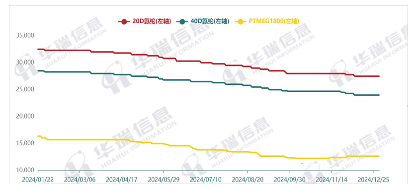 近年来,氨纶行业从2021年的景气高点步入下行周期,氨纶纤维价格下行调整,行业盈利水平降低,格局正在经历深度重塑。 2024年氨纶价格,延续单边下行的走势,屡创历史新低;氨纶供大于求,主要原料PTMEG价格持续下降,全年平均价格与2023年相比降低29%,缺乏成本支撑,行业多数企业亏损的局面仍难以扭转。