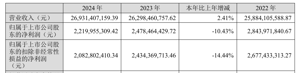 华峰化学2024年总营业收入269.31亿元,同比增长2.41%,扣非净利润20.82亿元,同比下降14.44%。