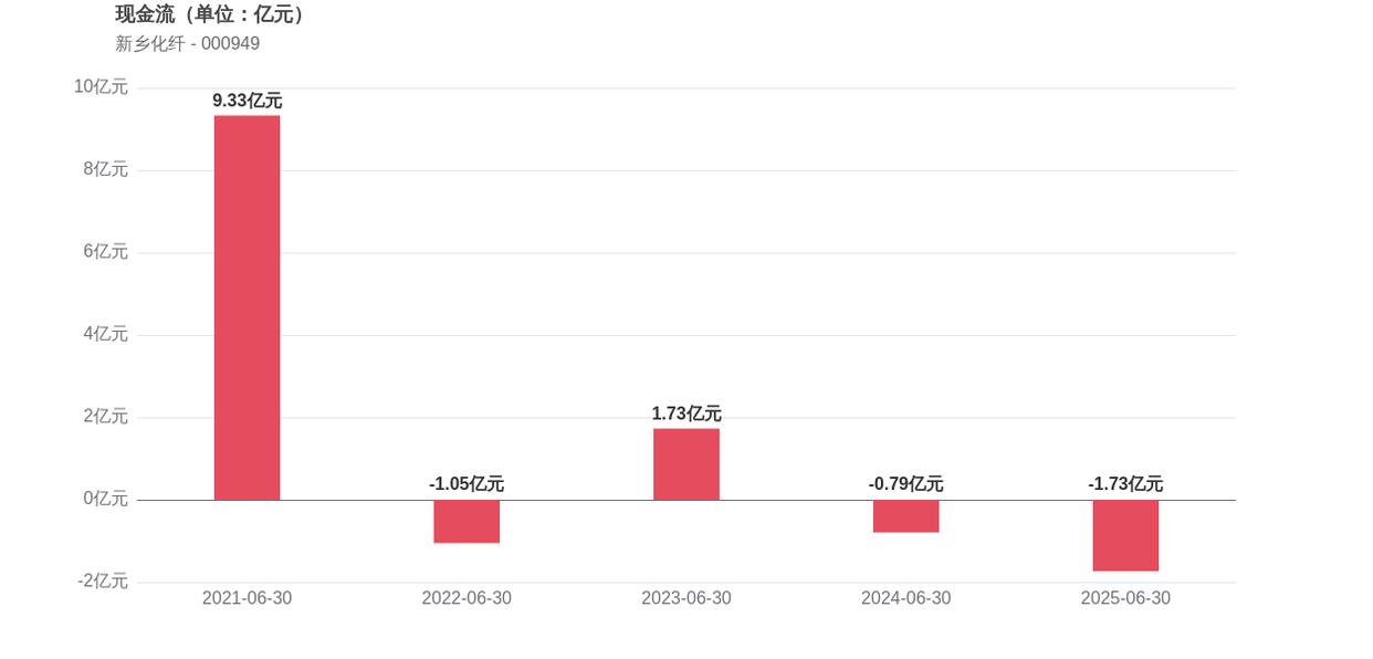 在经营稳健性方面,新乡化纤面临运营效率下降和现金流恶化的双重挑战,存货周转天数为103.05天,较2024年上半年增长了33.21%,表明库存压力加大。经营活动产生的现金流净额为-1.73亿元,较2024年同期的-0.79亿元进一步恶化,显示出公司现金回笼能力减弱。此外,2025年上半年的资产负债率为50.65%,同比增长了0.44个百分点。