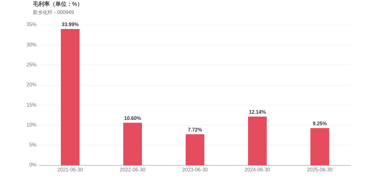在2025年上半年,新乡化纤的经营业绩承压明显,营业收入37.38亿元,同比下滑1.52%,归母净利润0.63亿元,同比大幅下滑58.58%。