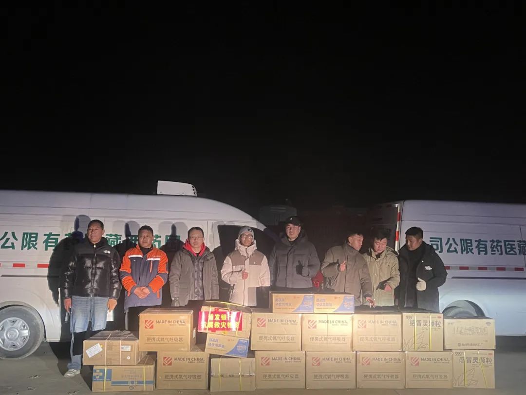 重药西藏迅速启动应急响应机制,全力驰援灾区,立即组织急需药品和医疗物资,包括退热药、止痛药、消毒用品、各类外伤包扎、便携式氧气等用品共计200余件,于1月9日凌晨率先抵达地震灾区,第一时间为灾区受伤群众和救援队伍的医疗需求提供有力支持。