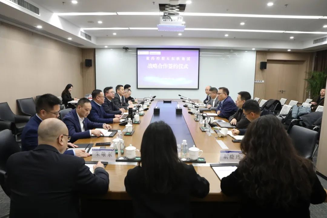会上,重药控股总裁、党委副书记刘伟代表重药控股与东软集团签署战略协议,并就智慧医疗领域的发展、数据驱动的应用以及运营管理的优化等方面进行了深入的交流和探讨。