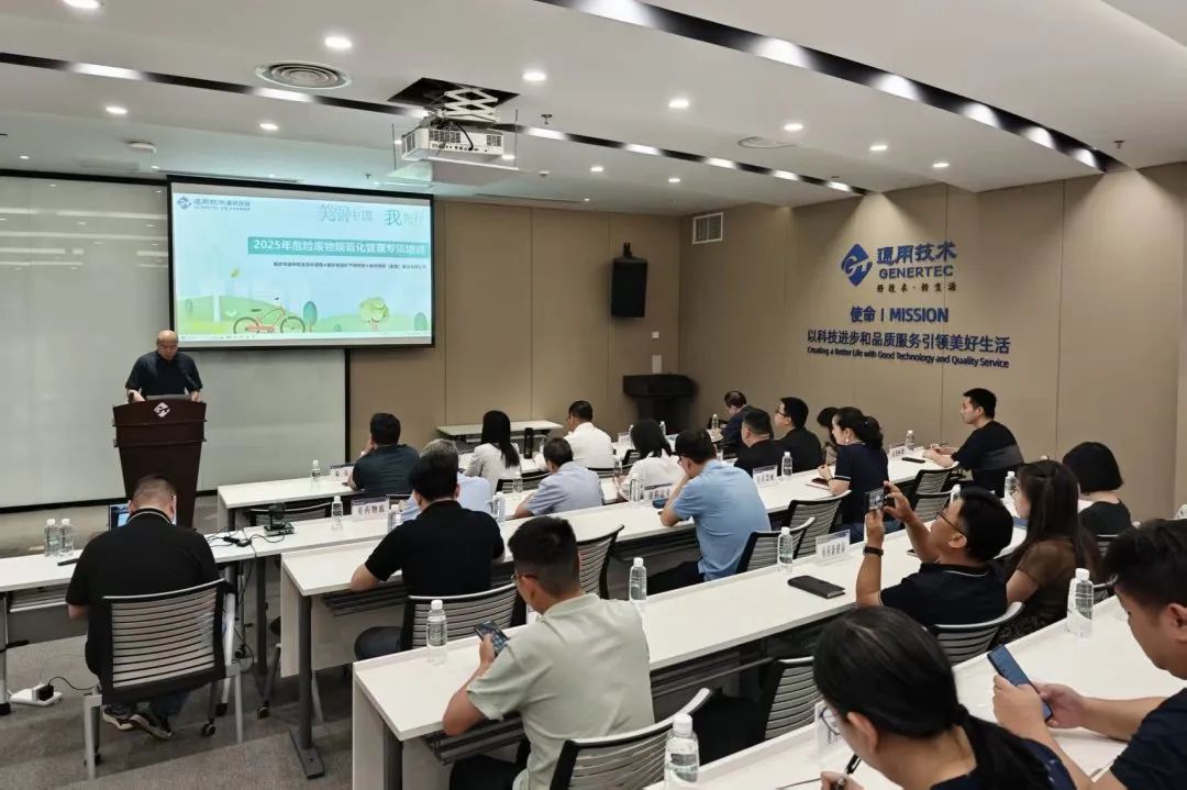 6月10日,通用技术重药控股以“现场+视频”的形式召开2025年危险废物规范化管理专项培训会,邀请重庆地质矿产研究院高级工程师、国家注册环境影响评价工程师、清洁生产审核师朱先亮授课。重庆市渝中区生态环境局宣教科科长黄慧,公司高级副总裁陈义海出席会议,各二级企业环保管理人员共200余人参会。