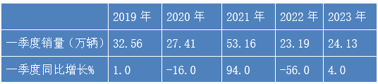 表:2023年一季度各月重卡销量及同比(来源:根据中汽协会数据)