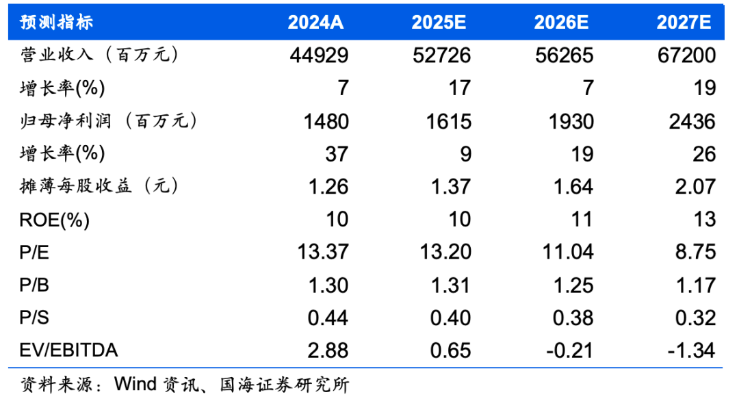 2025年中国重卡内需销量有望受老旧营运货车以旧换新政策拉动,进入景气区间。公司是国内重卡整车龙头之一,在多个细分市场表现亮眼,且截至2024年,出口份额连续二十年占据行业首位。我们认为放量改善竞争烈度、放量摊薄固定成本、产品结构优化是三个影响公司未来利润率的主要变量。我们预计公司2025-2027年实现营业总收入527、563与672亿元,同比增速17%、7%与19%;实现归母净利润16.2、19.3与24.4亿元,同比增速为9%、19%与26%。EPS为1.37、1.64与2.07元,对应当前股价的PE估值分别为13、11与9倍,维持“增持”评级。