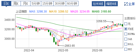 首先,从股市走势上来看,5月至6月中旬,上证指数都在上涨之中,从3000点左右涨至3358点。