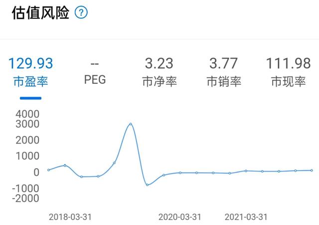 2022年一季报市盈率(TTM)129.93,低于22%的公司,行业排名154/185;近4年市盈率(TTM)平均-84.11,2021年最高为111.98,2018年最低为-239.44,呈上升趋势。