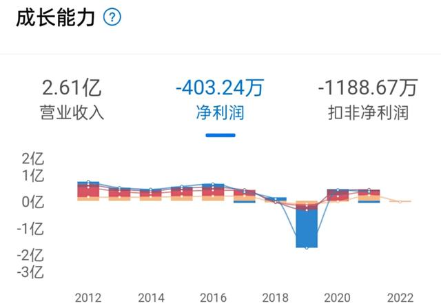 2022年一季报营业总收入2.61亿,超过35%的公司,行业排名120/185;近10年营业收入增速平均7.53%,2016年增速最高为35.65%,2019年增速最低为-13.30%,呈下降趋势。2022年一季报净利润-403.24万,超过19%的公司,行业排名165/185;近10年净利润增速平均-267.20%,2015年增速最高为23.44%,2019年增速最低为-2527.89%,呈下降趋势。