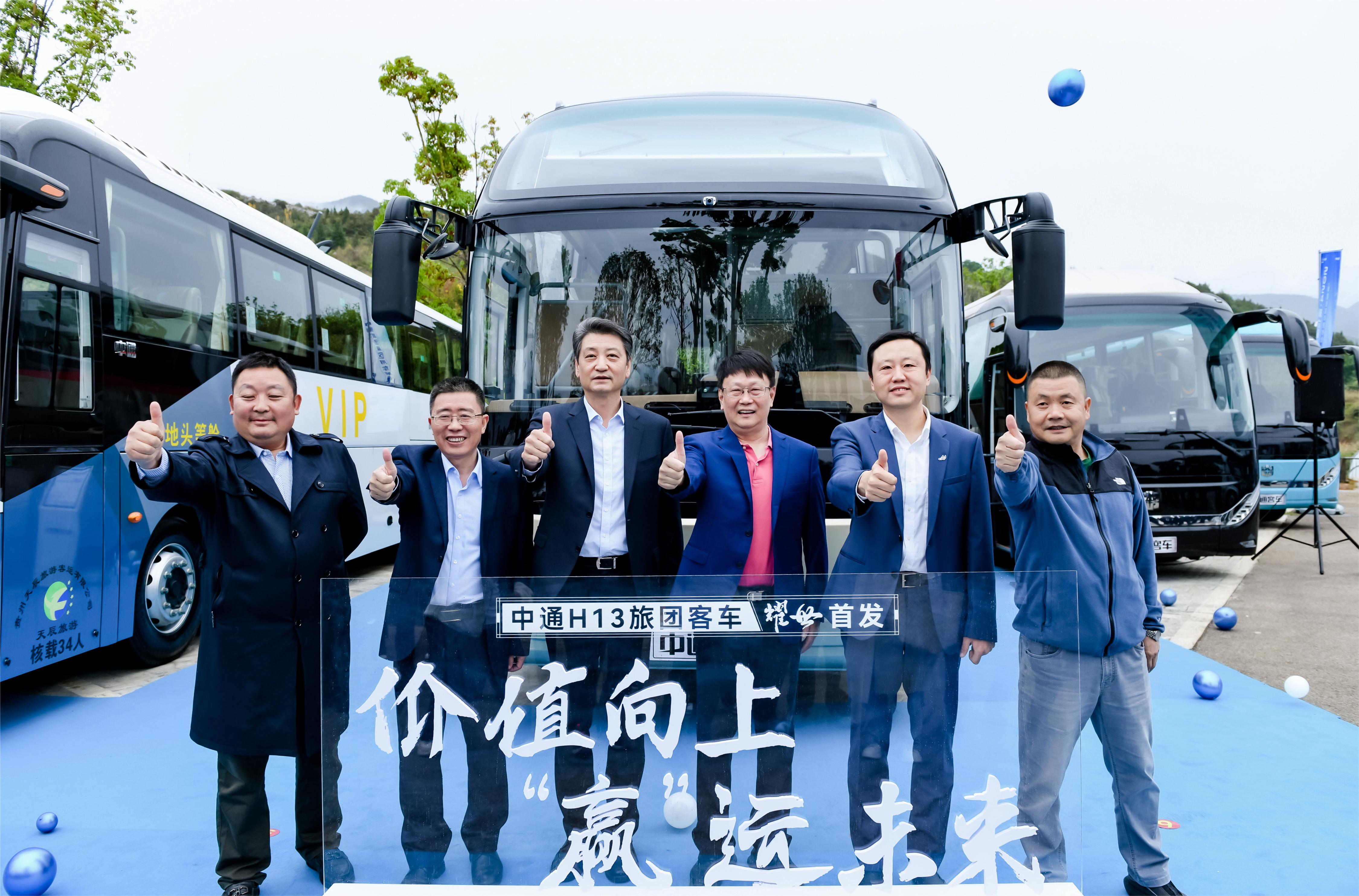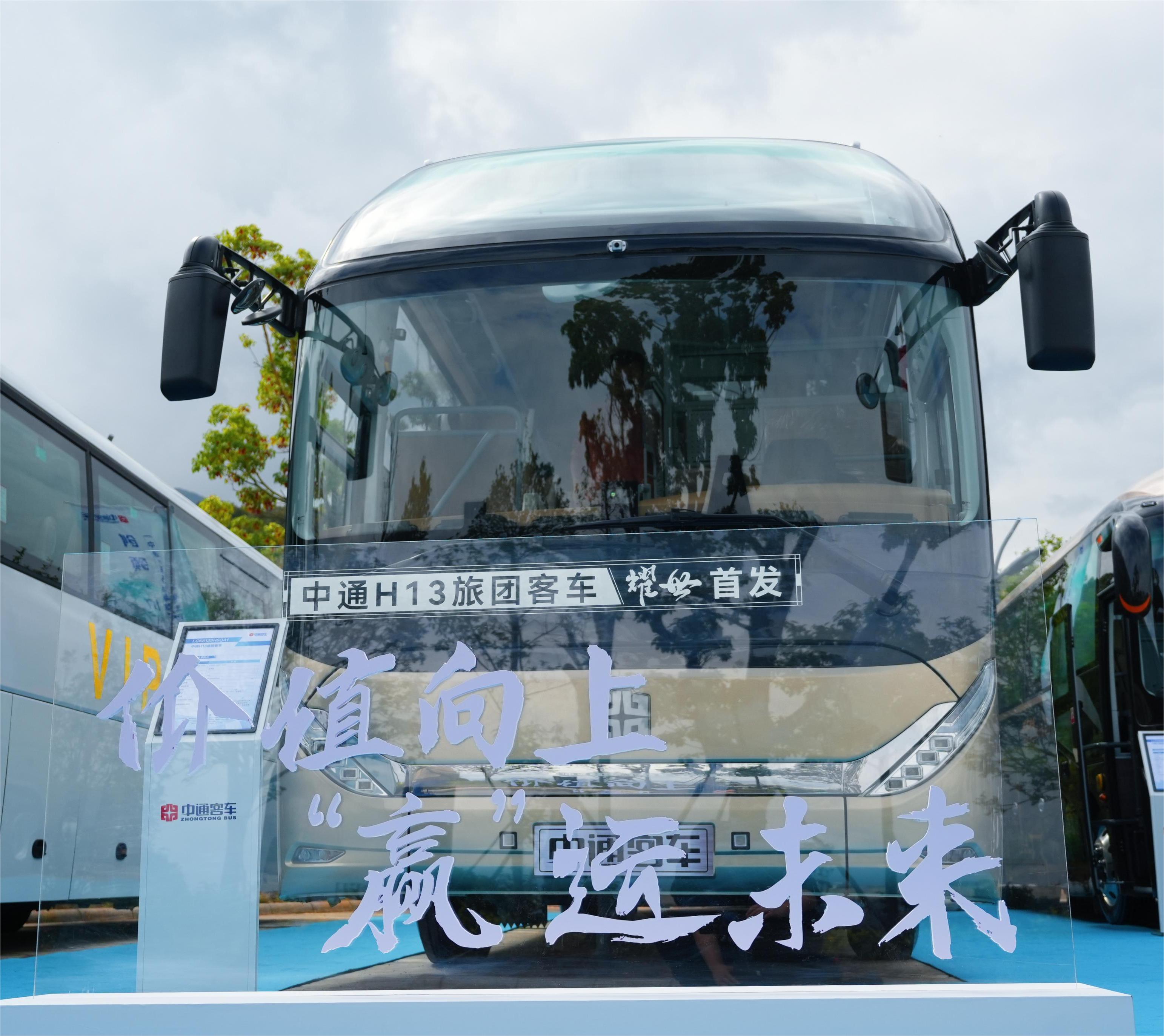 作为客车行业企业代表之一,中通客车立足行业前沿,致力于为旅游客运行业提供全场景解决方案,为用户创造更大价值。本次大会,中通客车以“价值向上,‘赢’运未来”为主题,发布了重磅新品中通H13旅团客车。