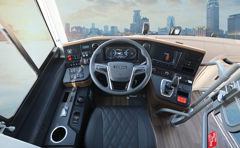 客运出行往往是中长途驾驶,降低驾驶员劳动强度对于行车安全至关重要。中通H13在行业内率先搭载了智能驾驶ACC自适应巡航系统,配合车道保持LKA、车道偏离辅助系统、前向碰撞预警、自动紧急制动、变道辅助等系统,带来半自动驾驶体验,有效减轻了驾驶员负担,提升行车安全。中通客车基于车辆运营和管理需求所开发的智慧旅团平台,能对车辆的运营全过程进行监控、管理,既提升了运营效率,也可预防危险,降低事故,为行车安全加码。