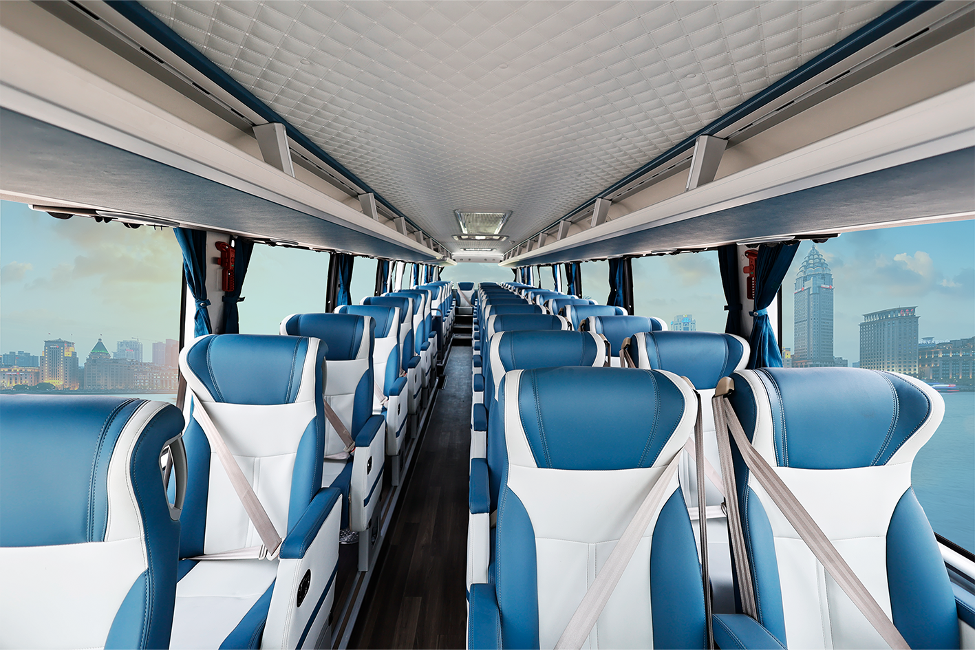 中通H13科学优化车内布置,实现了空间、运力的升级向上。在充分满足休息舱空间的情况下,中通H13合理布置,行李舱容积达到了9.5立方米,方便乘客携带更多的行李;车内座位数达到55+1,提升了运力,更好地适应大型客运、旅游及团体市场的承载需求。
