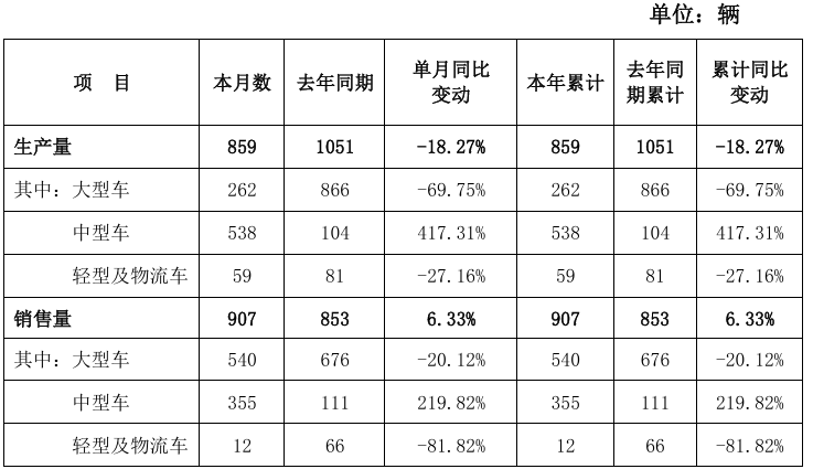 从整体来看,中通客车1月份的生产量为859辆,较去年同期的1051辆下降18.27%;销售量则达到907辆,同比增长6.33%。尽管整体生产量有所下滑,但销售量的增长显示出公司在市场拓展和产品销售方面取得了一定成效。不过,各车型之间的分化明显,中型车的快速增长未能完全弥补大型车和轻型及物流车的下滑。这表明中通客车在2025年开局阶段的市场表现呈现出机遇与挑战并存的局面。