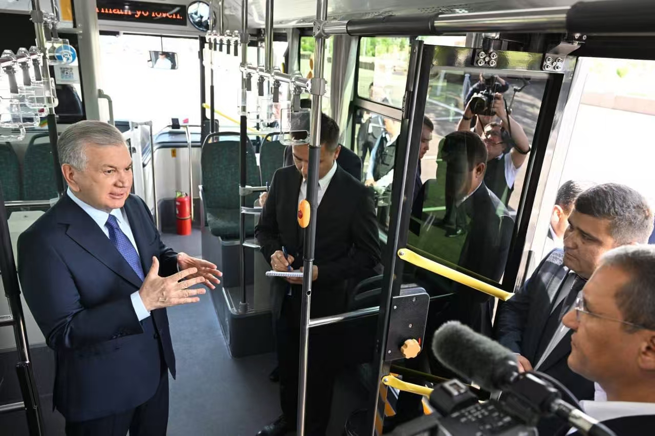 近日,乌兹别克斯坦总统沙夫卡特·米尔济约耶夫在花剌子模州首府乌尔根奇市考察期间,重点调研民众公共交通出行情况。在试乘山东重工中通N系公交客车后,点赞车辆对当地公共出行服务品质提升的卓越贡献。