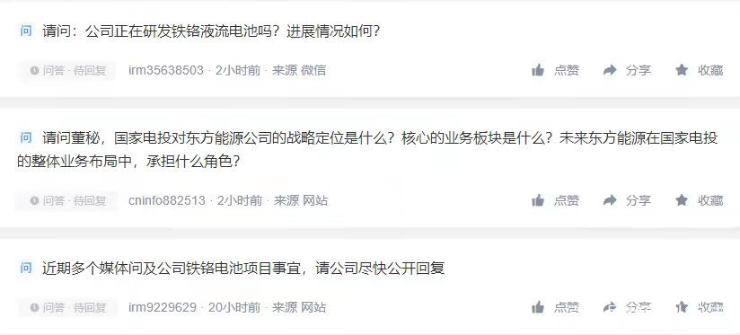 不过,即使在发表声明之后,仍有投资者过来询问铁铬液流电池项目相关事宜。