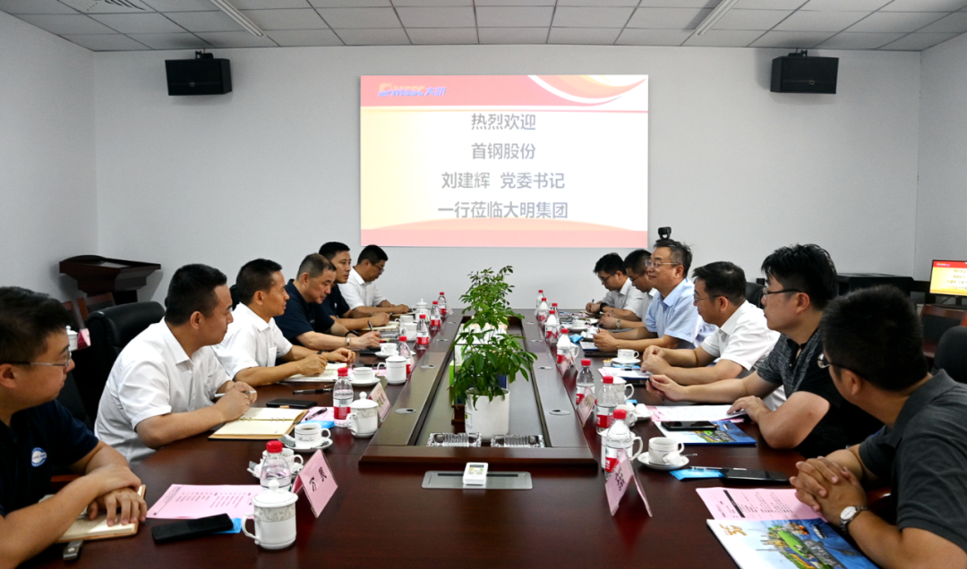 在随后的座谈中,周克明主席介绍了大明目前的发展情况、服务项目和后期规划,并回顾了与首钢的业务合作情况。刘建辉书记表示通过参观和介绍,进一步加深了对大明服务能力的了解,也对双方合作充满期待。