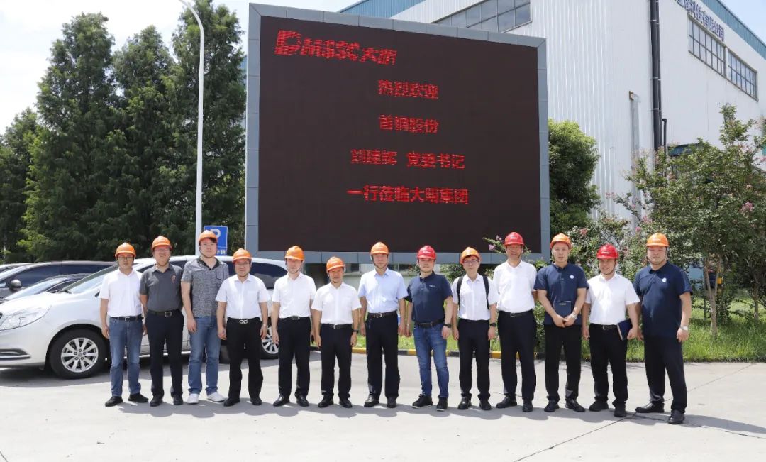 9月5日,首钢股份党委书记刘建辉、营销中心副总经理王兴洪,上海首钢钢贸总经理王同海、副总经理赵裔冰、总经理助理陆京京、中厚板部经理连玉栋等来访大明集团。