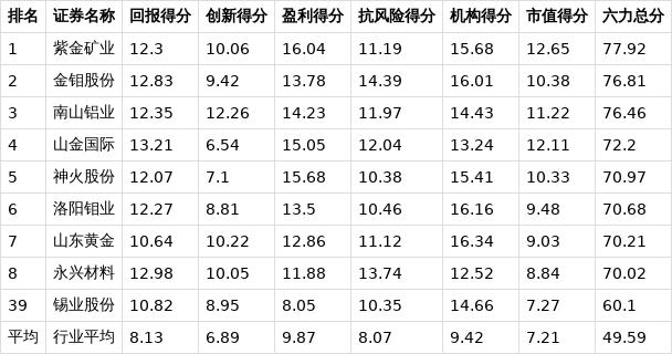 从所属行业角度来看,在申万一级有色金属行业的139家上市公司中,锡业股份位列行业第39位,行业平均分为49.59分,显示出公司在行业内的领先地位。