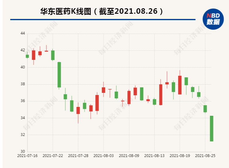 8月25日、26日,华东医药股价分别下跌4.98%、9.94%。