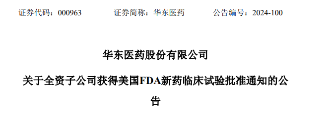 11 月 28 日,华东医药宣布,其全资子公司中美华东申报的 HDM1005 注射液临床试验申请已获得美国 FDA 批准,可在美国开展 I 期临床试验,用于阻塞性睡眠呼吸暂停(OSA)合并肥胖或超重患者的治疗。