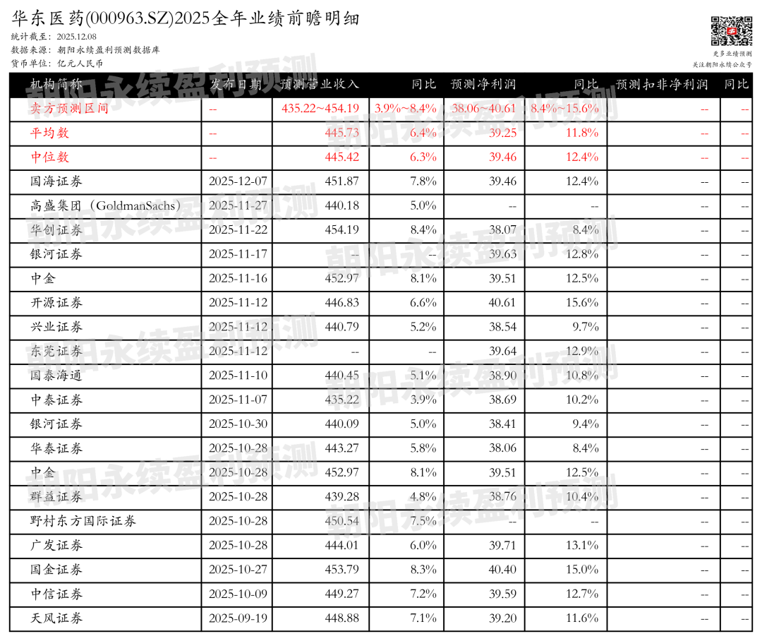 2. 华东医药 最新卖方观点 国海证券 认为: 华东医药 2025年前三季度收入和归母净利润分别同比增长3.77%和7.24%。工业板块核心子公司中美华东营业收入和归母净利润分别同比增长11.10%和15.62%。创新产品销售及代理服务收入同比增长62%,其中索米妥昔单抗注射液实现销售收入超4,500万元。公司正在推进90余项创新药管线项目,医药工业研发投入同比增长35.99%。